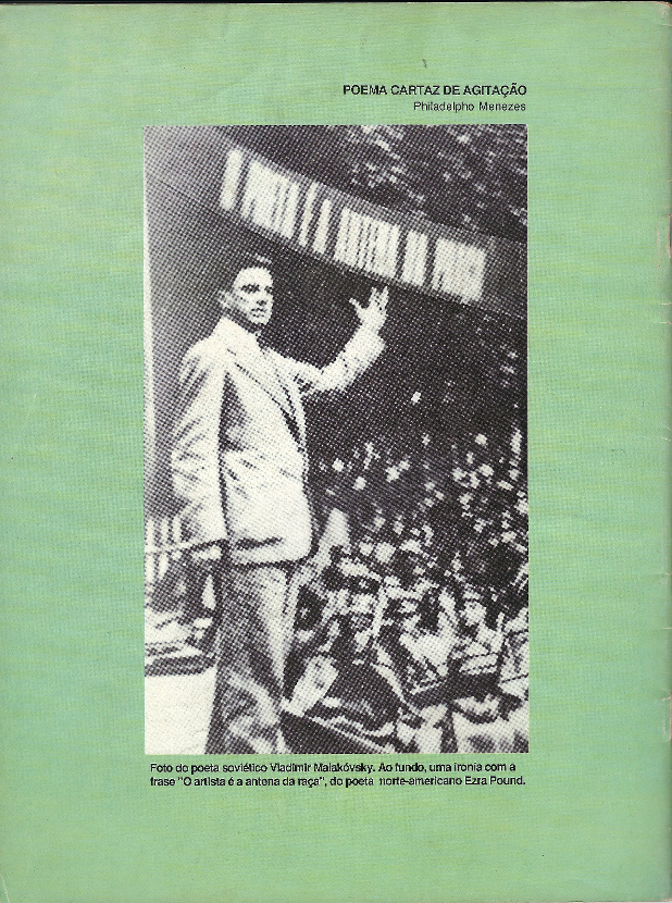 Foto do poeta soviético Vladimir Maiakóvsky. Ao fundo, uma ironia com a frase "O artista...