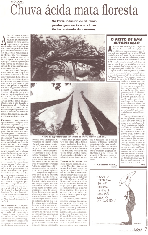 “Ecologia é a pauta”, de Ana Rita Araújo, Brasil Agora, ano I, nº 17, p. 12. Acervo: CSBH/FPA.