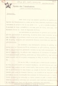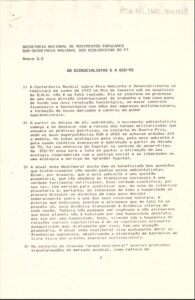 Circular 043/91 informando a aprovação da realização do I Encontro Nacional dos EcologistasCartaz do I Encontro Nacional dos EcologistasFolheto com apresentação e programação do I Encontro Nacional dos EcologistasPrincípios básicos para uma Sociedade Ecosocialista ou Manifesto EcossocialistaBalanço da Atuação da Sub-Secretaria Nacional dos EcologistasPrincípios básicos para uma Sociedade Ecosocialista ou Manifesto EcossocialistaOs Ecossocialistas e a Eco-92Carta endereçada ao Diretório Nacional sobre a criação da Secretaria Nacional de Meio Ambiente do PTCarta endereçada aos membros da Sub-Secretaria dos Ecologistas do PT, formalizando a criação da Secretaria Nacional de Meio Ambiente do PTCompêndio com Resoluções, Teses e MoçõesContribuição da Secretaria Nacional de Meio-Ambiente e Desenvolvimento (SMAD)Agenda 21 do PT. 4º Encontro Nacional da SMADRelatório do 5º Encontro Nacional da SMAD do PTProgramação do 6º Encontro Nacional da SMAD do PTResultados do VIII Encontro Nacional de Meio Ambiente e Desenvolvimento do PTProgramação do Seminário Meio Ambiente e DesenvolvimentoRelatório do Seminário Nacional de Ecologistas do PT (PT DN)Programação da conferência Política Sócio-Ambiental: a experiência democrática e popularCarta Convocação da Conferência da AmazôniaLeiaute com a arte da 1ª Conferência da AmazôniaCarta de BelémFolheto da II Conferência da Amazônia. Desenvolvimento sustentável, soberano, democrático e popularBloco de anotações da II Conferência da AmazôniaContribuição ao Debate da 2ª Conferência da Amazônia. Investimento, desenvolvimento e sustentabilidade: uma outra Amazônia é possívelTerceira Conferência da AmazôniaConvite do I Congresso Nacional em defesa da AmazôniaInforme Resumido sobre a Viagem de Marina nos EUATerceira Conferência da AmazôniaConvite do I Congresso Nacional em defesa da AmazôniaDesafios da Sustentabilidade Planetária. Um Mundo Sustentável é Possível.Boletim Biodiversidade Global. Edição EspecialFolheto da Semana Chico Mendes Vive!Circular Interna SNMP-019/88 contendo o relatório da 1ª reunião da Comissão de Ecologistas do PTO PT e o Movimento EcológicoNota Oficial do PartidoResoluções da 1ª Reunião da Coordenação Nacional da SNEMA – Secretaria Nacional dos Ecologistas e do Meio Ambiente e Plano Emergencial para 1993 – SNEMAEncontro Setorial de Ecologia. Ecologistas no 1º Congresso do PTResolução do II Congresso do Partido dos TrabalhadoresResolução do II Congresso do Partido dos TrabalhadoresPlano de Ação de Governo – Candidatura Presidencial, discutido no Seminário Nacional do Programa de Ação de GovernoPrograma de Governo Lula – 94. Área Ambiental. Documento preliminar para discussão interna no PT proposto pela Secretaria de Ecologistas e do Meio AmbienteAmazônia: propostas para o Programa Lula 98Justiça Ambiental: compromisso do PTSaneamento Para TodosRoteiro e Dicas Meio Ambiente. Subsídios para um programa de desenvolvimento sustentávelProposta mínima de implementação de uma política municipal de Meio Ambiente do Partido dos TrabalhadoresPrograma de Revitalização da Bacia Hidrográfica do Rio São FranciscoFolheto da Conferência Encontro das ÁguasFolheto do Seminário Água O Desafio do Terceiro MilênioAmazônia: Proteção Ecológica e Desenvolvimento com a Floresta em PéOs Ecosocialistas e a Eco-92 e Propostas de Intervenção dentro do PT / Propostas de Intervenção do PT nos Movimentos / As Administrações do PT e a Questão Ambiental