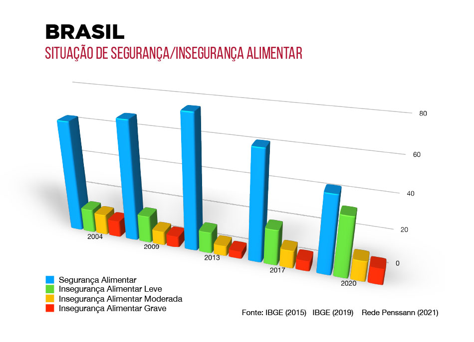 A fome volta às manchetes, mesmo sendo o Brasil um dos cinco maiores produtores de alimentos do mundo. Os dados são do Inquérito Nacional sobre Insegurança Alimentar no Contexto da Pandemia da Covid-19 no Brasil, realizado pela Rede Brasileira de Pesquisa em Soberania e Segurança Alimentar e Nutricional (Penssan).