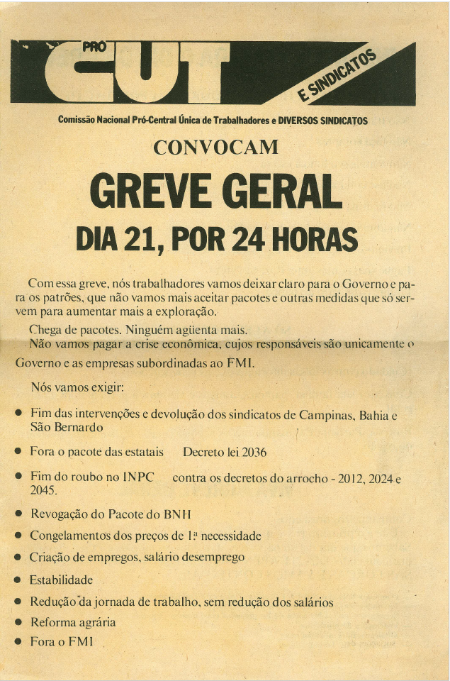 Os documentos abaixo estão disponíveis no acervo do Centro Sérgio Buarque de Holanda – Documentação e Memória Política. Foram digitalizados para compor uma amostragem do que temos para consulta em nosso acervo físico da Secretaria Sindical Nacional do Partido dos Trabalhadores.