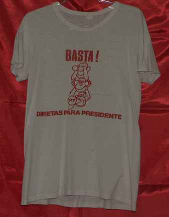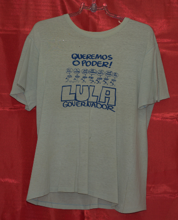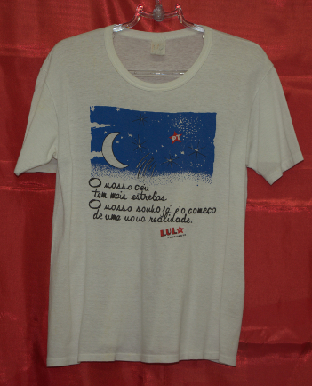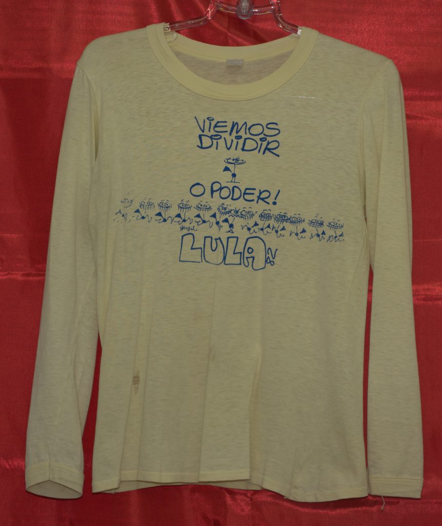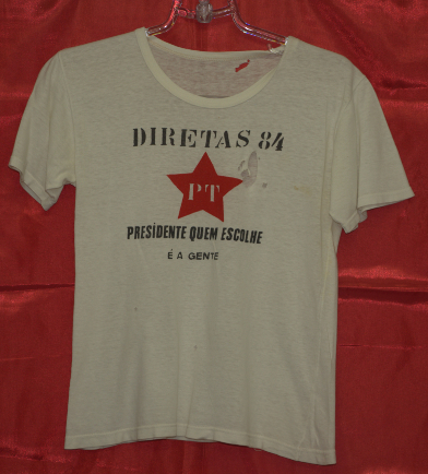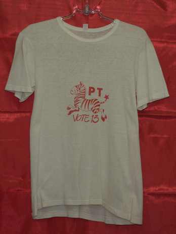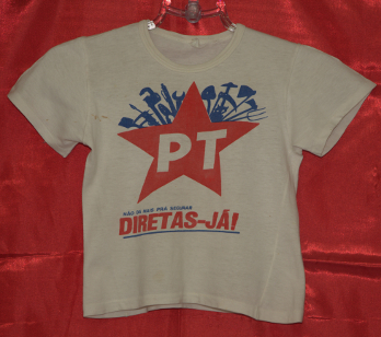 Campanha Lula Presidente pelo PT (Local desconhecido, 1989). (Fundo PT, Diretório Nacional. Acervo CSBH-FPACampanha Lula Presidente pelo PT (Local desconhecido, 1989). (Fundo PT, Diretório Nacional. Acervo CSBH-FPA)Campanha Lula Governador pelo PT (São Paulo, 1982). (Fundo PT, Diretório Nacional. Acervo CSBH-FPA)Campanha Lula Governador pelo PT (São Paulo, 1982). (Fundo PT, Diretório Nacional. Acervo CSBH-FPA)Campanha Lula Governador pelo PT (São Paulo, 1982). (Fundo PT, Diretório Nacional. Acervo CSBH-FPA).Campanha pelas Diretas-Já, realizada pelo PT (Local desconhecido, [1984?]). (Fundo PT, Diretório Nacional. Acervo CSBH-FPA)Campanha pelas Diretas para presidente, realizada pelo PT (Local desconhecido, [1984?]). (Fundo PT, Diretório Nacional. Acervo CSBH-FPA).Camiseta de divulgação do PT (Local desconhecido, data desconhecida). (Fundo PT, Diretório Nacional. Acervo CSBH-FPA).Campanha eleitoral do PT (Local desconhecido, data desconhecida). (Fundo PT, Diretório Nacional. Acervo CSBH-FPACampanha eleitoral Eduardo Suplicy pelo PT (São Paulo, data desconhecida). (Fundo PT, DiretórioNacional. Acervo CSBH-FPA).Camiseta sobre a Constituinte 1987/1988, realizado pelo Diretório Acadêmico de Direito 9 de Julho Bauru (Bauru-SP, [1987/88?]). (Fundo Movimentos Sociais. Acervo CSBH-FPA).Casaco utilizado em campanhas eleitorais do PT (Local desconhecido, data desconhecida). (Fundo Partido dos Trabalhadores. Acervo CSBH-FPA)Casaco utilizado em campanhas eleitorais do PT (Local desconhecido, data desconhecida). (Fundo Partido dos Trabalhadores. Acervo CSBH-FPA)Caravana da Cidadania (Local desconhecido, data desconhecida). (Fundo PT, Diretório Nacional. Acervo CSBH-FPA)Campanha Lula Presidente pelo PT (Local desconhecido, 1989). (Fundo PT, Diretório Nacional. Acervo CSBH-FPA).Campanha pelas Diretas-Já, realizada pelo PT (Local desconhecido, [1984?]). (Fundo PT, Diretório Nacional. Acervo CSBH-FPA)Camiseta de divulgação do PT (Local desconhecido, data desconhecida). (Fundo PT, Diretório Nacional. Acervo CSBH-FPA)Campanha pela Constituinte 1987/1988 (Local desconhecido, [1987/88?]). (Fundo Movimentos Sociais. Acervo CSBH-FPA)Campanha pelas Diretas para presidente, realizada pelo PT (Local desconhecido, [1984?]). (Fundo Movimentos Sociais. Acervo CSBH-FPA)Camiseta de divulgação do PT (Local desconhecido, data desconhecida). (Fundo Lisy Salum e Djalma Bom. Acervo CSBH-FPA)Campanha eleitoral do PT (São Bernardo-SP, 1982). (Fundo Lisy Salum e Djalma Bom, Acervo CSBH-FPA)Campanha pelas Diretas (Local desconhecido, 1984). (Fundo Movimentos Sociais. Acervo CSBH-FPA).