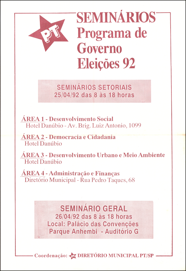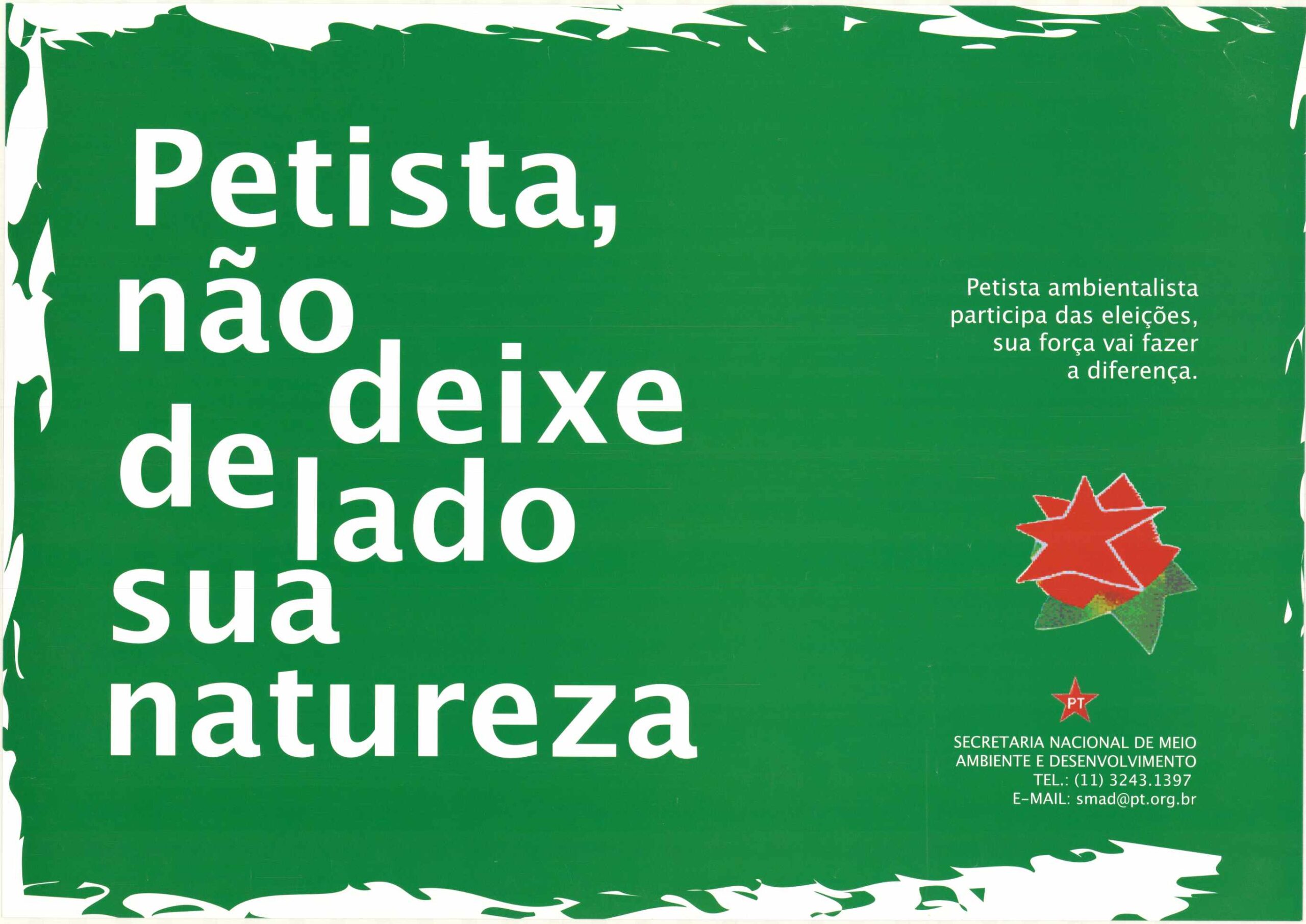 Ato comemorativo dos 13 anos de luta pelos direitos dos povos indígenas, eleições de 2002. [s/l]. Crédito: Autoria desconhecida. Acervo CSBH/FPALançamento do Programa de Governo para a Amazônia, de Lula, eleições de 2002. Pará. Crédito: Lucivaldo Sena. Acervo CSBH/FPALançamento do Programa de Governo para a Amazônia, de Lula, eleições de 2002. Pará. Crédito: Lucivaldo Sena. Acervo CSBH/FPALançamento do Programa de Governo para a Amazônia, de Lula, eleições de 2002. Pará. Crédito: Lucivaldo Sena. Acervo CSBH/FPA.Atividades do programa de saneamento da Prefeitura de Angra dos Reis/RJ, gestão do PT. [1993-1996]. Crédito: Fernando Rizzo. Acervo CSBH/FPAAtividades do programa de saneamento da Prefeitura de Angra dos Reis/RJ, gestão do PT. [1993-1996]. Crédito: Fernando Rizzo. Acervo CSBH/FPAAtividades do programa de saneamento da Prefeitura de Angra dos Reis/RJ, gestão do PT. [1993-1996]. Crédito: Fernando Rizzo. Acervo CSBH/FPA.Atividades do programa de saneamento da Prefeitura de Angra dos Reis/RJ, gestão do PT. [1993-1996]. Crédito: Fernando Rizzo. Acervo CSBH/FPA.Atividades do programa de saneamento da Prefeitura de Angra dos Reis/RJ, gestão do PT. [1993-1996]. Crédito: Fernando Rizzo. Acervo CSBH/FPA.Atividades do programa de saneamento da Prefeitura de Angra dos Reis/RJ, gestão do PT. [1993-1996]. Crédito: Fernando Rizzo. Acervo CSBH/FPAAtividades do programa de saneamento da Prefeitura de Angra dos Reis/RJ, gestão do PT. [1993-1996]. Crédito: Fernando Rizzo. Acervo CSBH/FPA.Atividades do programa de saneamento da Prefeitura de Angra dos Reis/RJ, gestão do PT. [1993-1996]. Crédito: Fernando Rizzo. Acervo CSBH/FPA.Atividades do programa de saneamento da Prefeitura de Angra dos Reis/RJ, gestão do PT. [1993-1996]. Crédito: Fernando Rizzo. Acervo CSBH/FPA.Atividades do programa de saneamento da Prefeitura de Angra dos Reis/RJ, gestão do PT. [1993-1996]. Crédito: Fernando Rizzo. Acervo CSBH/FPA.Retrato de família de trabalhadores rurais em acampamento dos sem terra. [s/l.], 30 set. 1989. Crédito: Autoria desconhecida.Seminário Meio Ambiente e Desenvolvimento. São Paulo/SP, 1998. Crédito: Autoria desconhecida. Acervo CSBH/FPA.Seminário Meio Ambiente e Desenvolvimento. São Paulo/SP, 1998. Crédito: Autoria desconhecida. Acervo CSBH/FPA.Seminário Meio Ambiente e Desenvolvimento. São Paulo/SP, 1998. Crédito: Autoria desconhecida. Acervo CSBH/FPA.Seminário Meio Ambiente e Desenvolvimento. São Paulo/SP, 1998. Crédito: Autoria desconhecida. Acervo CSBH/FPA.Seminário Meio Ambiente e Desenvolvimento. São Paulo/SP, 1998. Crédito: Autoria desconhecida. Acervo CSBH/FPA.Seminário Meio Ambiente e Desenvolvimento. São Paulo/SP, 1998. Crédito: Autoria desconhecida. Acervo CSBH/FPA.Seminário Meio Ambiente e Desenvolvimento. São Paulo/SP, 1998. Crédito: Autoria desconhecida. Acervo CSBH/FPA.Seminário Meio Ambiente e Desenvolvimento. São Paulo/SP, 1998. Crédito: Autoria desconhecida. Acervo CSBH/FPA.Seminário Meio Ambiente e Desenvolvimento. São Paulo/SP, 1998. Crédito: Autoria desconhecida. Acervo CSBH/FPA.Seminário Meio Ambiente e Desenvolvimento. São Paulo/SP, 1998. Crédito: Autoria desconhecida. Acervo CSBH/FPA.Seminário Meio Ambiente e Desenvolvimento. São Paulo/SP, 1998. Crédito: Autoria desconhecida. Acervo CSBH/FPA.Seminário Meio Ambiente e Desenvolvimento. São Paulo/SP, 1998. Crédito: Autoria desconhecida. Acervo CSBH/FPA.Seminário Meio Ambiente e Desenvolvimento. São Paulo/SP, 1998. Crédito: Autoria desconhecida. Acervo CSBH/FPA.Seminário Meio Ambiente e Desenvolvimento. São Paulo/SP, 1998. Crédito: Autoria desconhecida. Acervo CSBH/FPA.Seminário Meio Ambiente e Desenvolvimento. São Paulo/SP, 1998. Crédito: Autoria desconhecida. Acervo CSBH/FPA.Seminário Meio Ambiente e Desenvolvimento. São Paulo/SP, 1998. Crédito: Autoria desconhecida. Acervo CSBH/FPA.Obras de reflorestamento do aterro sanitário da Prefeitura de Londrina/PR, gestão do PT. [s/d.]. Crédito: Autoria desconhecida. Acervo CSBH/FPA.Obras de reflorestamento do aterro sanitário da Prefeitura de Londrina/PR, gestão do PT. [s/d.]. Crédito: Autoria desconhecida. Acervo CSBH/FPA.Obras de reflorestamento do aterro sanitário da Prefeitura de Londrina/PR, gestão do PT. [s/d.]. Crédito: Autoria desconhecida. Acervo CSBH/FPA.Obras de reflorestamento do aterro sanitário da Prefeitura de Londrina/PR, gestão do PT. [s/d.]. Crédito: Autoria desconhecida. Acervo CSBH/FPA.Obras do aterro sanitário da Prefeitura de Goiânia/GO, gestão do PT. [s/d.]. Crédito: Autoria desconhecida. Acervo CSBH/FPA.Obras do aterro sanitário da Prefeitura de Goiânia/GO, gestão do PT. [s/d.]. Crédito: Autoria desconhecida. Acervo CSBH/FPA.Obras do aterro sanitário da Prefeitura de Goiânia/GO, gestão do PT. [s/d.]. Crédito: Autoria desconhecida. Acervo CSBH/FPA.Obras do aterro sanitário da Prefeitura de Goiânia/GO, gestão do PT. [s/d.]. Crédito: Autoria desconhecida. Acervo CSBH/FPA.Obras do aterro sanitário da Prefeitura de Goiânia/GO, gestão do PT. [s/d.]. Crédito: Autoria desconhecida. Acervo CSBH/FPA.Obras do aterro sanitário da Prefeitura de Goiânia/GO, gestão do PT. [s/d.]. Crédito: Autoria desconhecida. Acervo CSBH/FPA.Obras do projeto de saneamento Prosanear da Prefeitura de Angra dos Reis/RJ, gestão do PT. 1995. Crédito: Autoria desconhecida. Acervo CSBH/FPA.Obras do projeto de saneamento Prosanear da Prefeitura de Angra dos Reis/RJ, gestão do PT. 1995. Crédito: Autoria desconhecida. Acervo CSBH/FPA.Obras do projeto de saneamento Prosanear da Prefeitura de Angra dos Reis/RJ, gestão do PT. 1995. Crédito: Autoria desconhecida. Acervo CSBH/FPA.Obras do projeto de saneamento Prosanear da Prefeitura de Angra dos Reis/RJ, gestão do PT. 1995. Crédito: Autoria desconhecida. Acervo CSBH/FPA.Obras do projeto de saneamento Prosanear da Prefeitura de Angra dos Reis/RJ, gestão do PT. 1995. Crédito: Autoria desconhecida. Acervo CSBH/FPA.Obras do proj