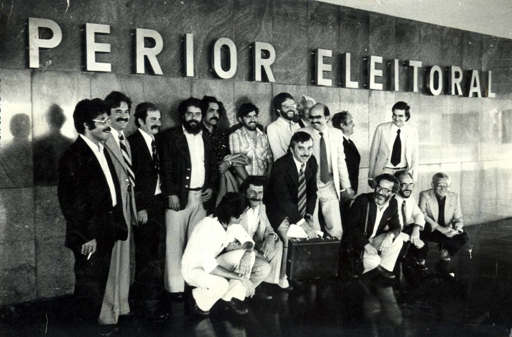 Entrega do pedido de registro provisório do PT no Tribunal Superior Eleitoral, São Paulo-SP, 01 dezembro de 1980. Crédito: Mauro Di Deus. Acervo: CSBH/FPA.