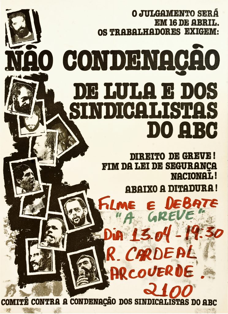Cartaz “Não à condenação de Lula e dos sindicalistas do ABC”, São Paulo-SP, 13 de abril de 1981. Acervo: CSBH/FPA.