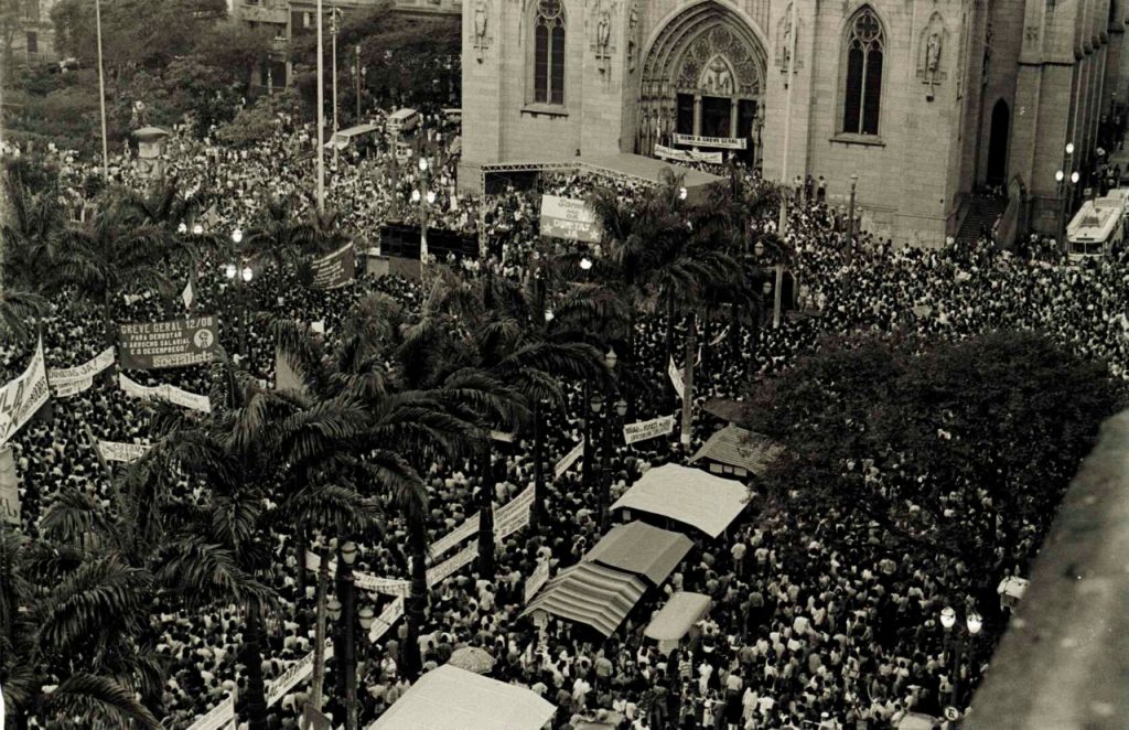 Passeata pelas “Diretas Já!”, São Paulo-SP, [25 janeiro] de 1984. Crédito: Vera Jursys. Acervo: CSBH/FPA.