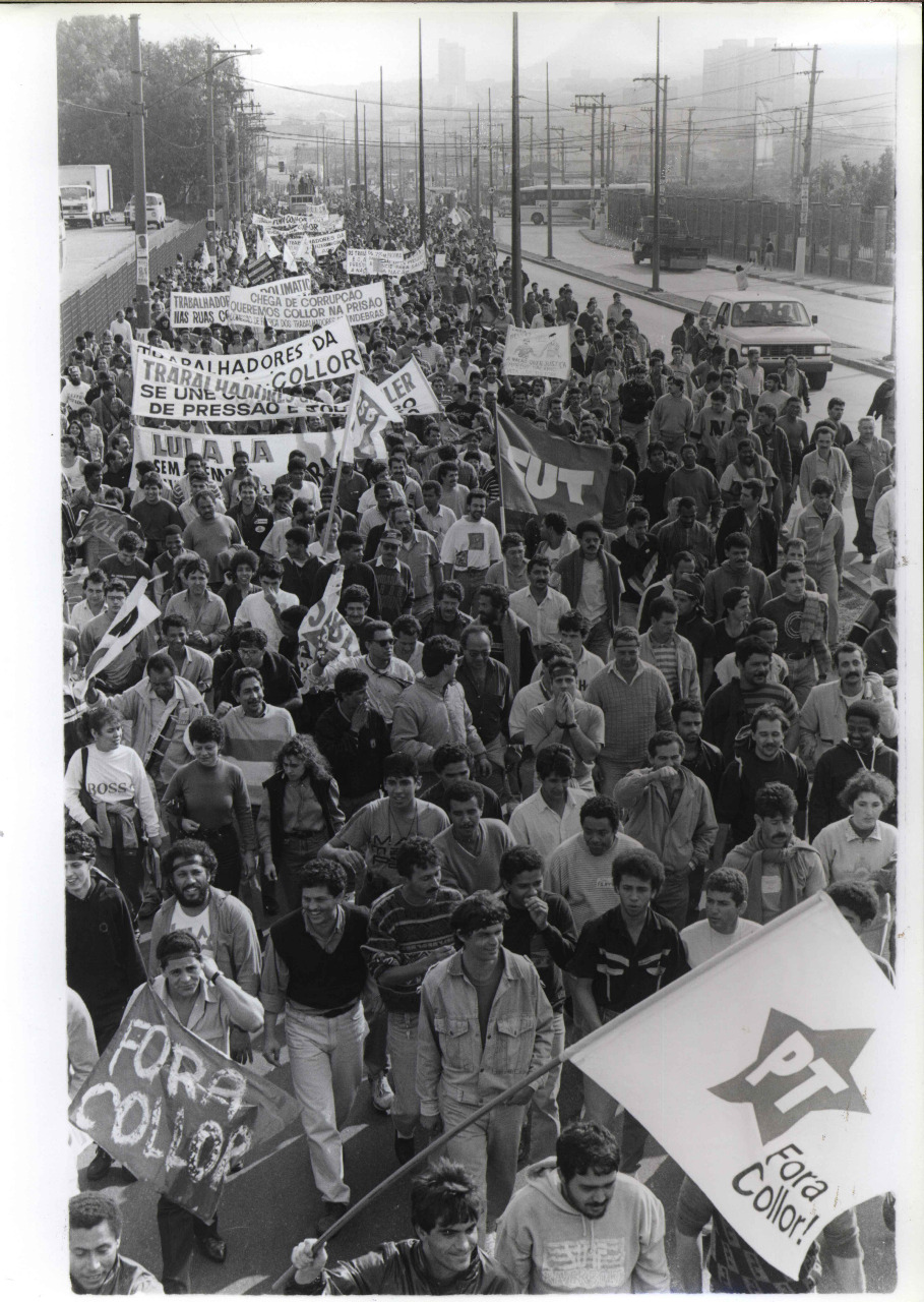 Manifestação pelo impeachment do então presidente Fernando Collor de Mello, convocada por movimentos sociais e partidos de esquerda, São Paulo-SP, 1992. Crédito: Autoria desconhecida. Acervo: CSBH/FPA.