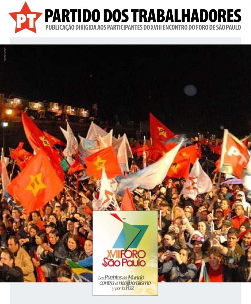 Publicação do PT dirigida aos participantes do XVIII Foro de São Paulo, ocorrido nos dias 4, 5 e 6 de julho de 2012 em Caracas (Venezuela). Acervo: Foro de São Paulo.