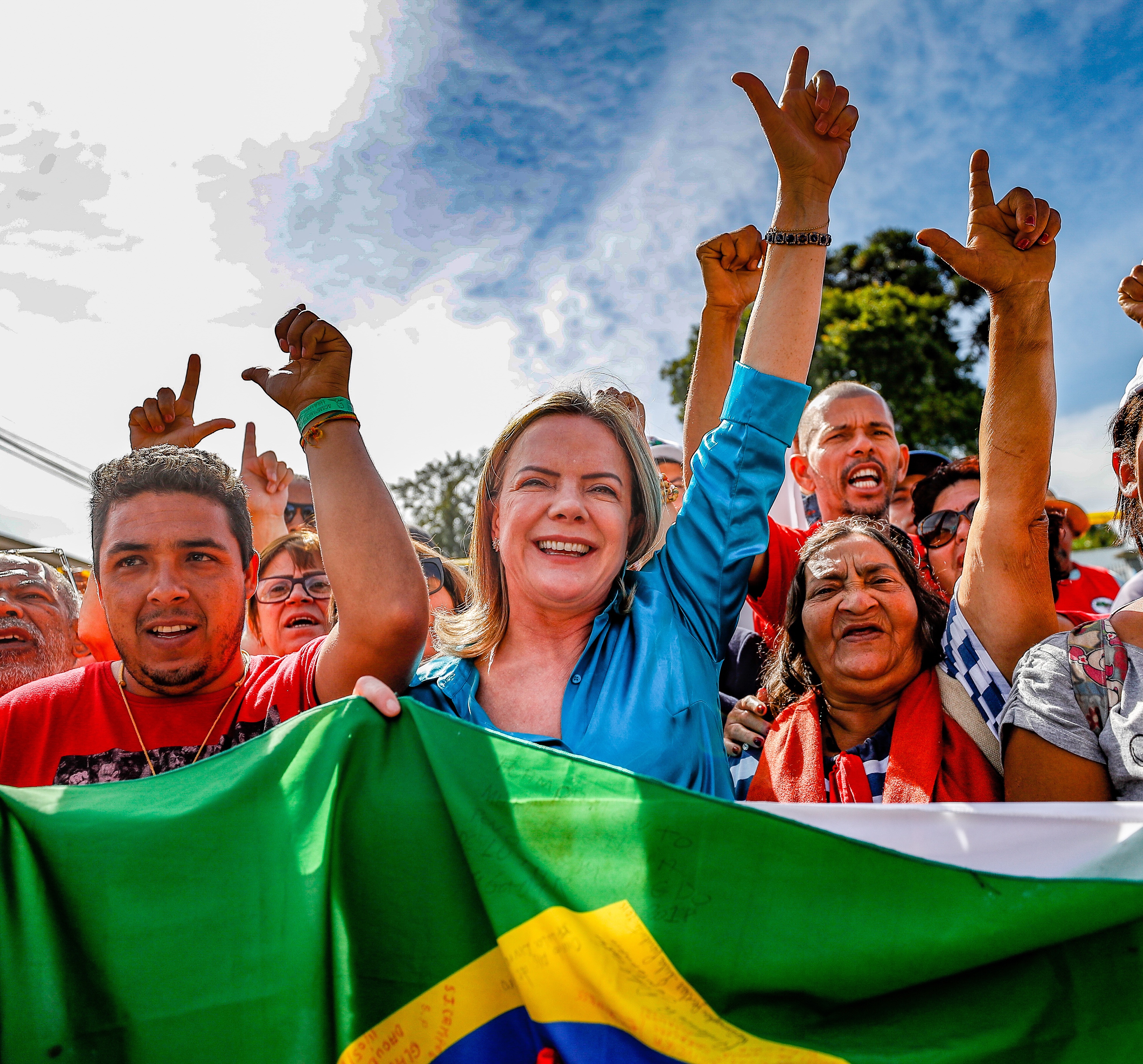 Presidenta do PT e, à época, senadora, Gleisi Hoffmann, visita Vigília Lula Livre, Curitiba-PR, 11 maio de 2018. Crédito: Ricardo Stuckert Filho.