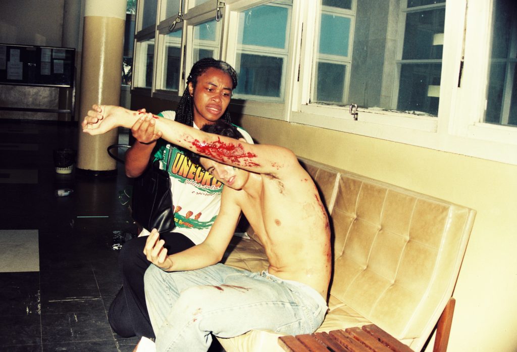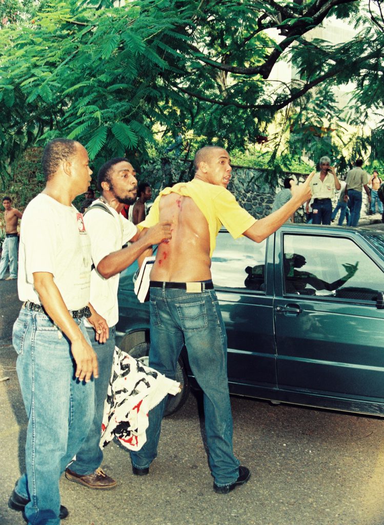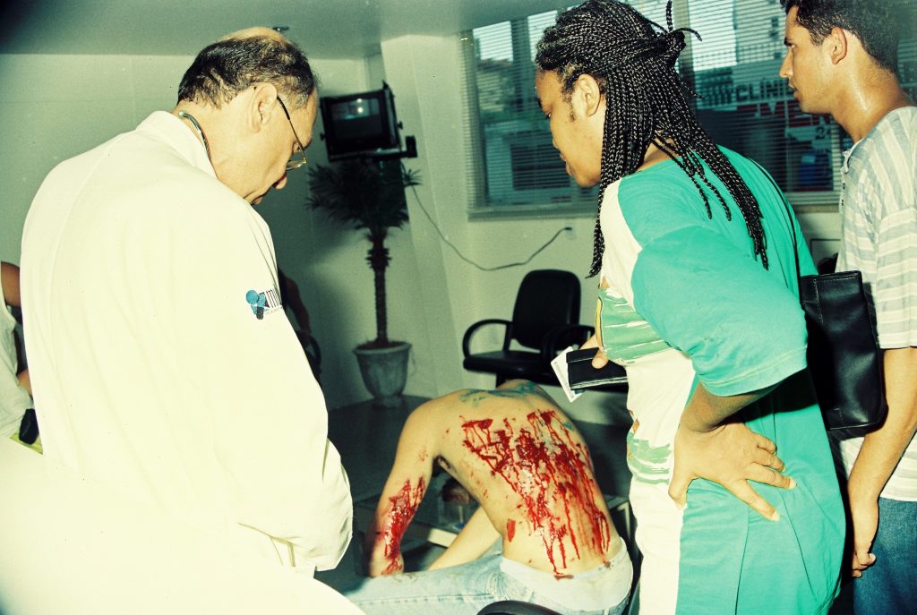 16 de maio de 2001 – Clínica São Marcos, Bairro da Graça. Estudante é atingido por uma granada lançada pela PM na manifestação