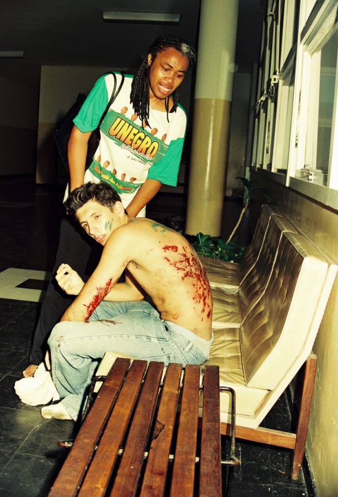 Não conformada com tamanha violência, a PM baiana, comandada pelo major Castro, avançou com seus homens até chegar ao pavilhão da Faculdade de Direito. Lá, os policiais atiraram dezenas de granadas, fazendo ainda mais vítimas, mesmo com todos os apelos feitos pelos professores e funcionários que ali estavam. Uma cena me marcou, um jovem, menor de idade, teve ferimentos brutais por todo o seu corpo por conta da explosão de uma destas bombas.