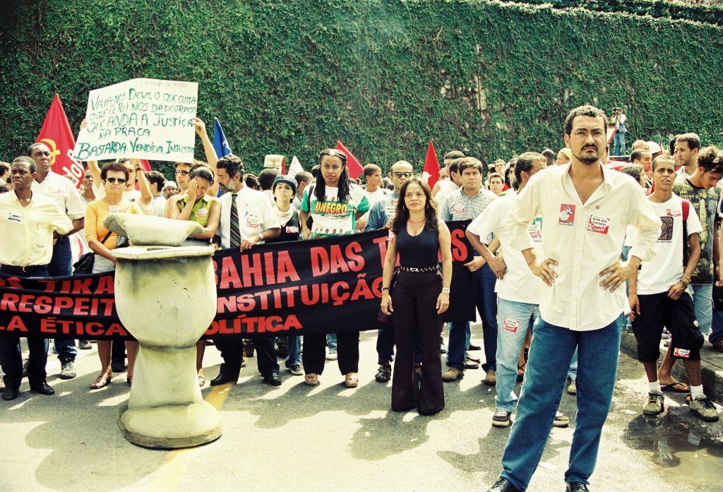 Falar do Maio Baiano é falar de um capítulo sombrio da história recente da Bahia e do Brasil, onde a vontade de lutar pelos princípios básicos de justiça e democracia estavam estampados nos semblantes de todos aqueles manifestantes que eu consegui capturar através das minhas lentes. No dia 10 de maio de 2001, ao saber da manifestação pela cassação do então senador Antônio Carlos Magalhães, que teria início na antiga escola técnica da Bahia, me dirigi até o local, para realização de mais uma pauta. Entretanto, algo me dizia que aquele seria um dia descomunal, visto que eu encontrei de 50 a 80 pessoas, na grande maioria, estudantes.