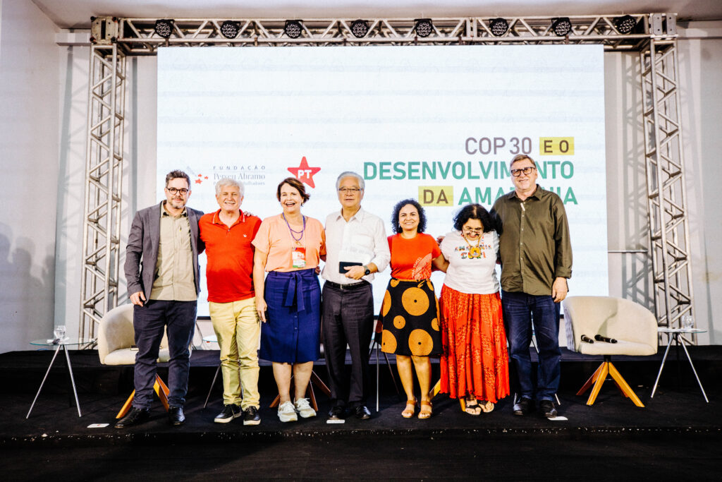 Na quinta-feira, dia 4, a Fundação Perseu Abramo realizou na cidade de Belém do Pará, sede da COP30, o seminário COP30 e o desenvolvimento da Amazônia. Participaram da discussão o presidente da FPA, Paulo Okamotto, o deputado federal Airton Faleiro, o pesquisador do Instituto de Pesquisa Econômica Aplicada, Pedro Silva Barros, a presidenta da CUT do Pará, Vera Paoloni. A mediação foi feita por Claudinha Lima, secretária nacional de nucleação da Executiva nacional do PT.