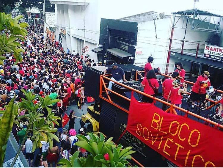 Se ainda estivesse saindo no Carnaval de rua paulistano, o Bloco Soviético teria completado 10 anos em 2023. Nascido de um grupo de amigos que se reunia em torno de um bar na região da Augusta, São Paulo, o bloco começou improvisado, mas já muito aguerrido. Com comando central das ativistas Vange Leonel, Cilmara Bedaque e Verônica Goyzueta, juntou jornalistas, artistas e estudantes em torno da ideia de recuperar a parte festiva da expressão “esquerda festiva”.