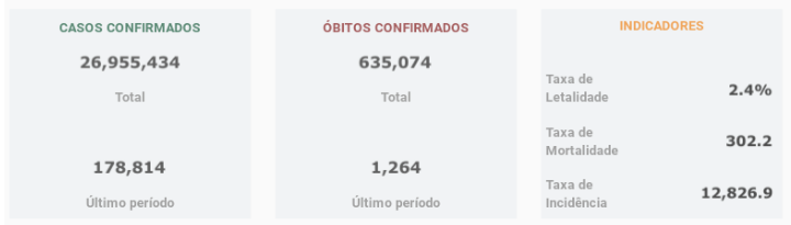 Números de casos e mortes pela covid-19 desta terça-feira no Brasil. Fonte: Conass