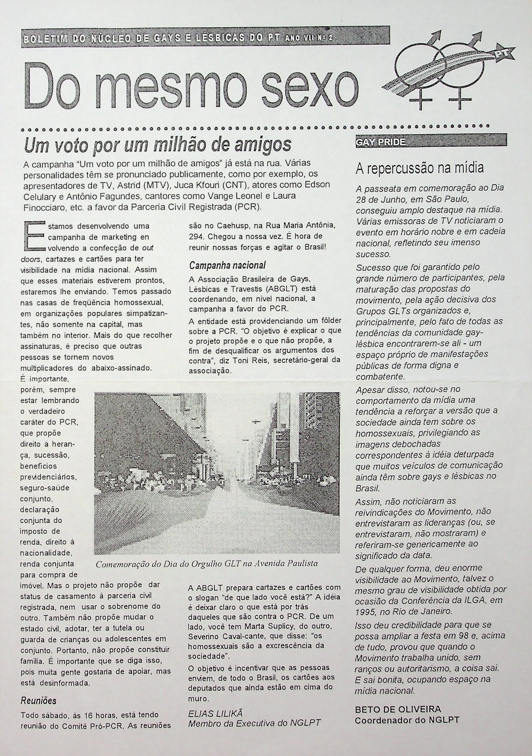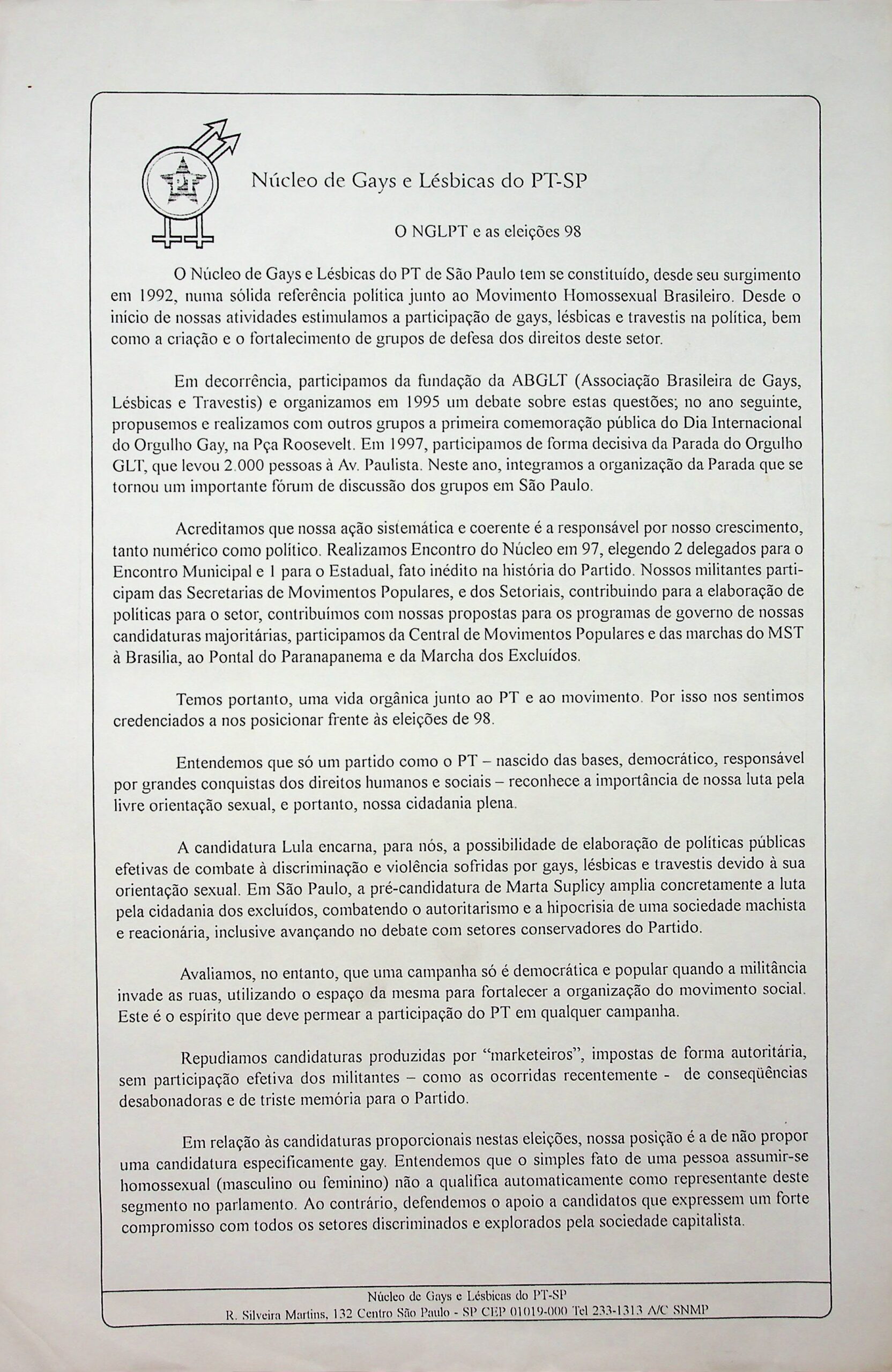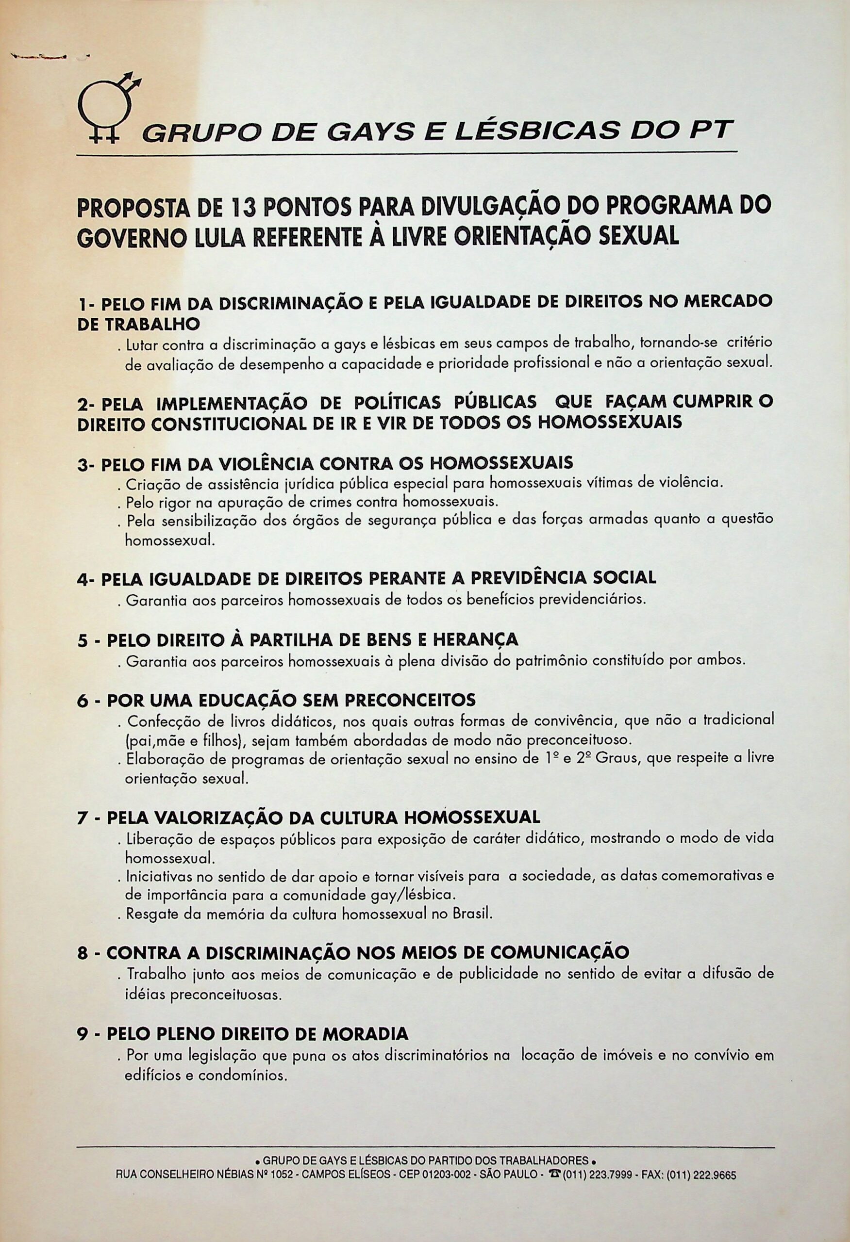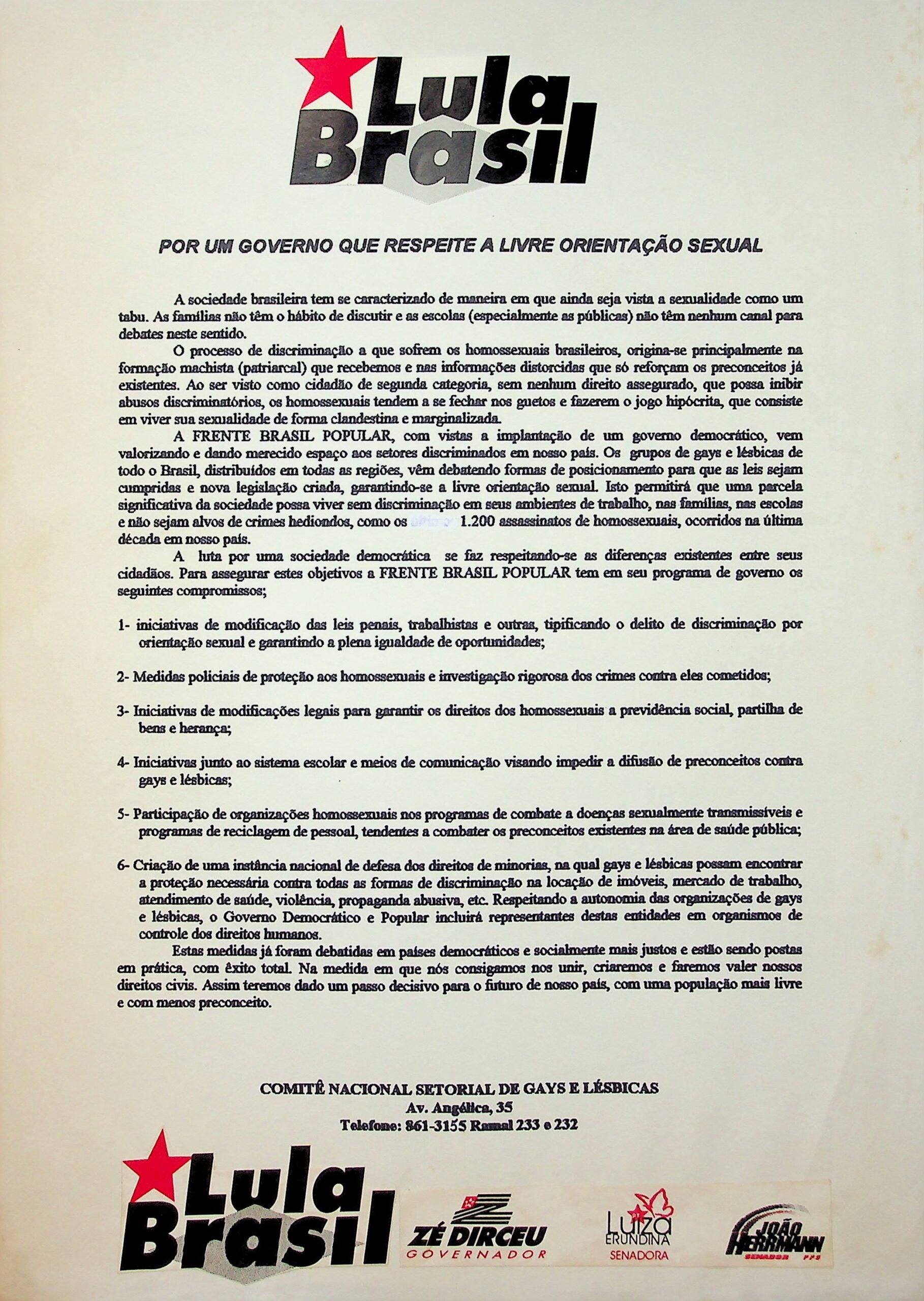 Os documentos abaixo estão disponíveis no acervo do Centro de Documentação e Memória Política Sérgio Buarque de Holanda. Foram digitalizados para compor uma amostragem do que temos para consulta em nosso acervo físico da Secretaria Nacional LGBT.